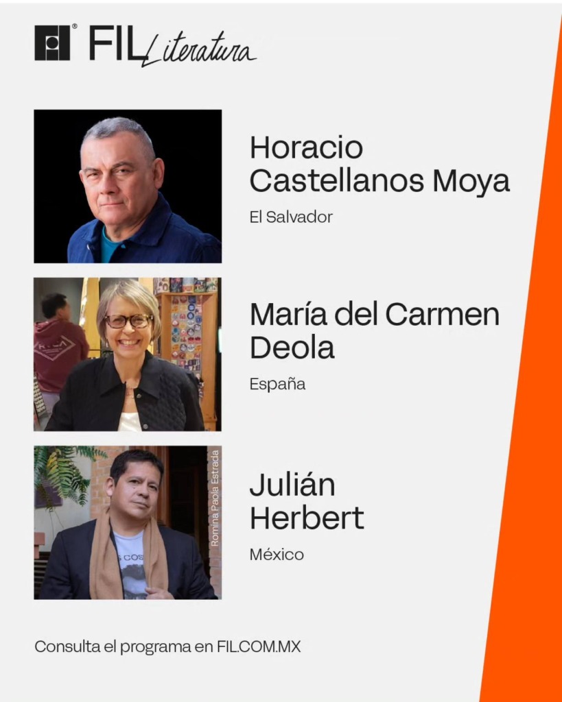 La primera charla titulada “Centroamérica en México y México en Centroamérica: un viaje literario de ida y vuelta” se realizará el sábado 29 de noviembre en el salón 3, y contará con una de las figuras fundamentales de la literatura actual salvadoreña, Horacio Castellanos Moya, quien conversará con el escritor mexicano Julián Herbert, acompañados por Claudia Neira Bermúdez, directora del Festival Centroamérica Cuenta, conversarán sobre obsesiones comunes: la memoria, la violencia histórica, las huellas del exilio y las formas en que la literatura interviene en esas experiencias. El martes 2 de diciembre se llevará a cabo la segunda mesa, “Editar el mapa: Centroamérica desde la página en blanco”, con la participación de la editora radicada en Guatemala desde hace 40 años, María del Carmen Deola, quien reflexionará junto con Elena Salamanca y Carlos Wynter Melo acerca de los caminos literarios del istmo y su proyección en el mundo.