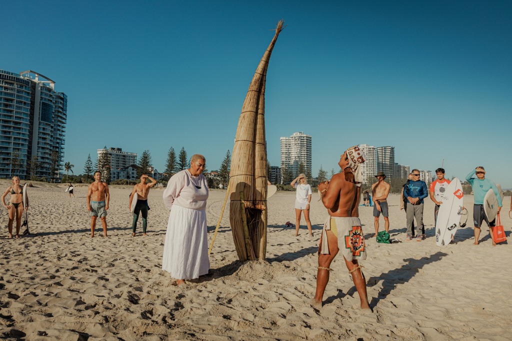 La escena más representativa del evento se vivió en la playa de Gold Coast, cuando el caballito de totora surcó las olas junto a surfistas locales, creando una imagen única que fusionó la tradición milenaria con este deporte. Este espectáculo fue cubierto por la televisión australiana e influencers que disfrutaron de esta velada, amplificando el impacto visual de nuestra herencia ante millones de espectadores.